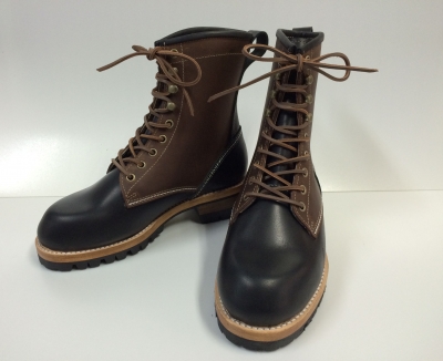 BT-06と同様の外羽根のブーツですがデザインが多少違います。 こちらはつま先が二重あて革になっていないシンプルデザインですが仕様変更も出来ます。 2色の革を使うコンビネーションもお選びいただけます。 筒の部分の裏革は牛革で耐久性をアップし、つま先部分には好評の備長炭繊維+アクアステルスが内装され一日中履いていてもムレや冷えも無く快適な履き心地です。