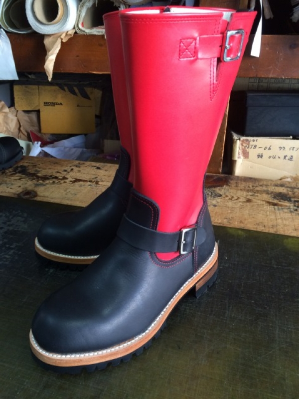 女性の方からのBT-05エンジニアブーツのオーダーでシャフトがレッドでステッチもレッドと色鮮やかなブーツに仕上がりました。ハーレーFLTRのオーナーですがこのブーツで颯爽と駆け巡る姿はさぞカッコいいでしょうね!
